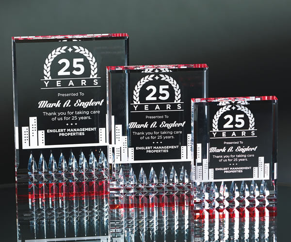This jewel-cut acrylic award features precision laser engraving and a vibrant colored base, creating a modern, eye-catching presentation with clean lines and brilliant clarity.