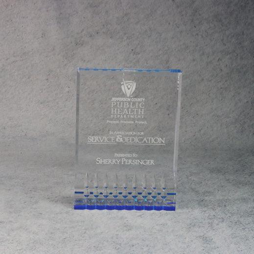 This acrylic is beautiful with the colorful jewel cuts across the bottom. If you are looking to shine a spotlight on and recognize your best achievers, this is the trophy for you.
