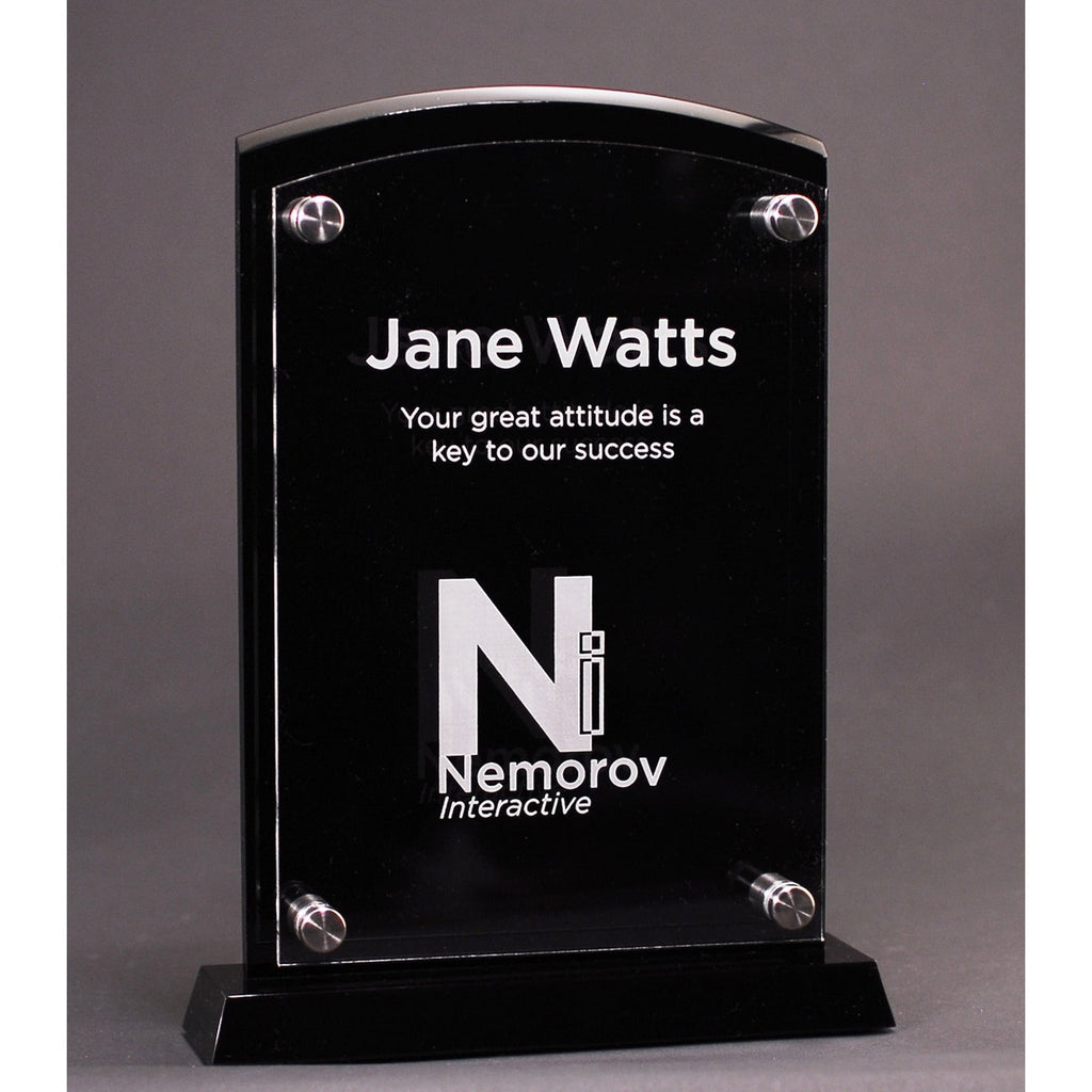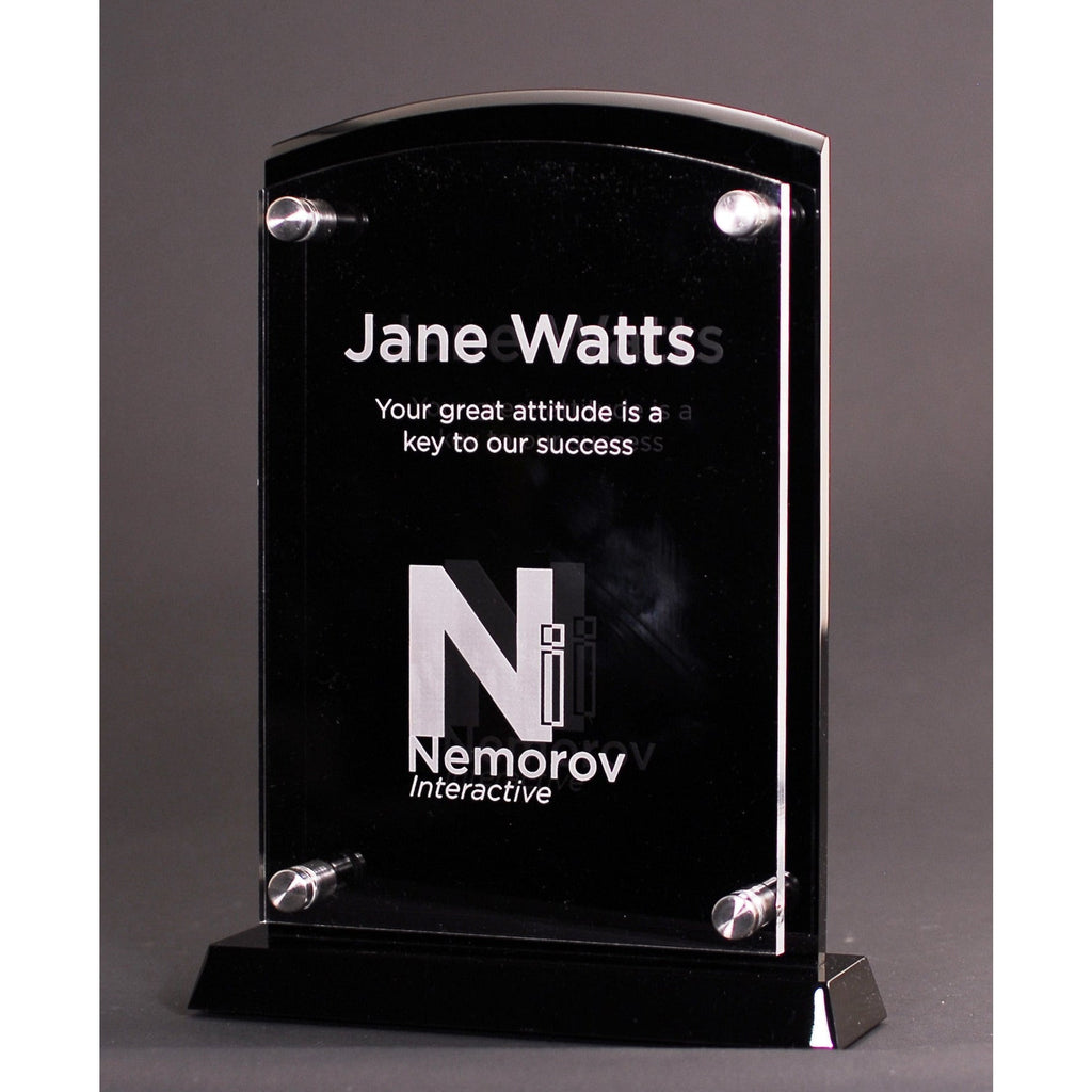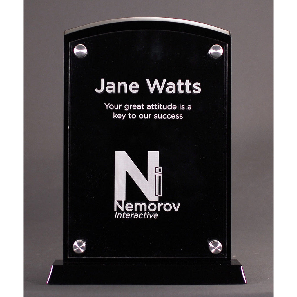 - Billboard Black Arch - The black Acrylic on the back of this award provides an impressive, distinctive look that makes an impact. We're sure it'll be the centerpiece of any room or office shelf!