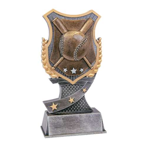 This bold Baseball Shield-Style Trophy is the perfect way to recognize standout players, unforgettable plays, or a season well played. Featuring a dynamic shield design that blends traditional charm with a modern twist, this award makes a strong statement on any shelf or display case. Crafted from high-quality resin and standing 7 inches tall, it's a fitting tribute to excellence on the diamond.