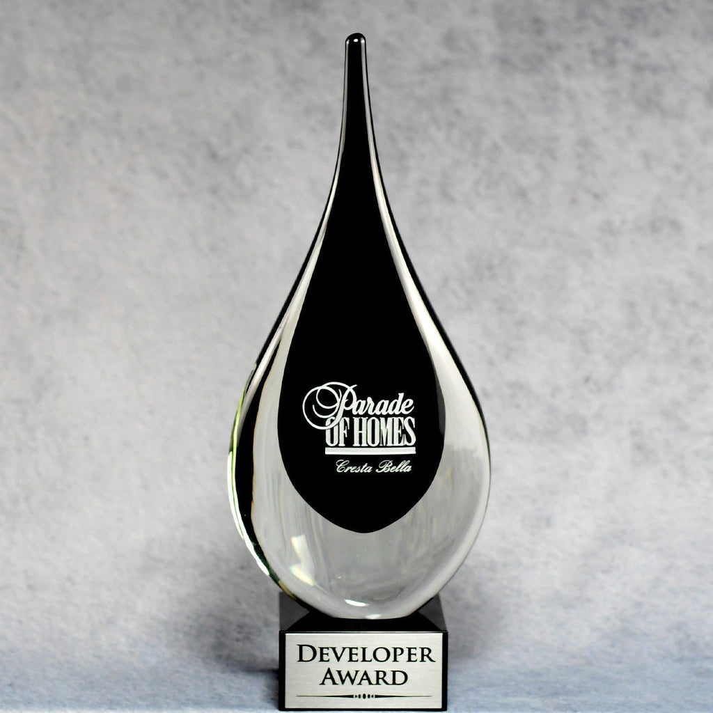 - One set-up fee: No matter how many awards you’d like of the same type, only one set-up fee applies! With this Artglass Black Teardrop Award, you get impressive quality at a fantastic value.