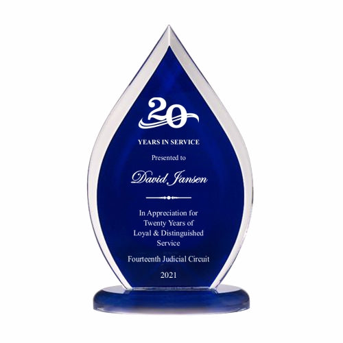 Graceful and refined, the Blue Teardrop Acrylic Award features a smooth teardrop shape accented by a rich blue base. Its clean lines and elegant simplicity make it an excellent choice for recognizing achievement with a modern, polished touch.