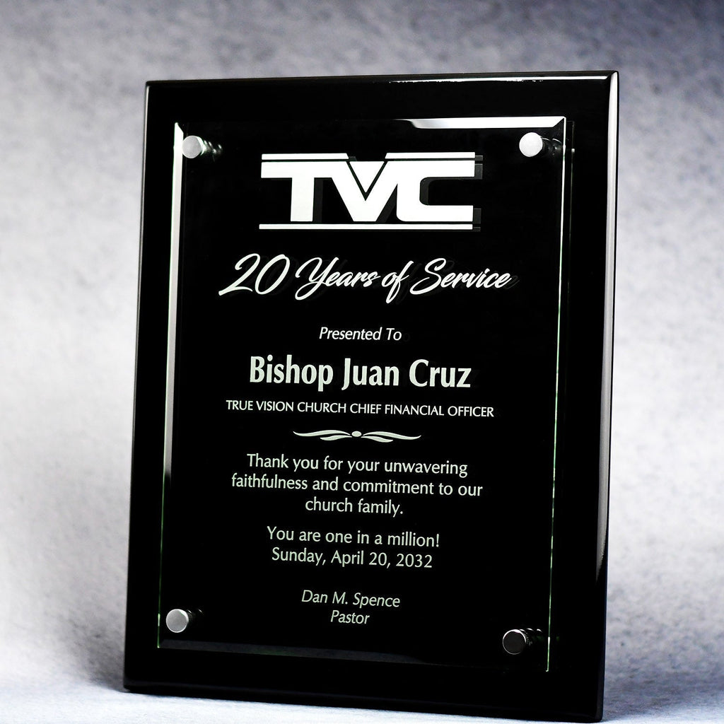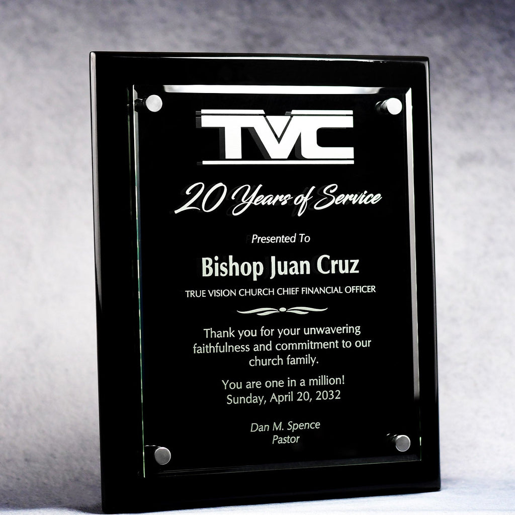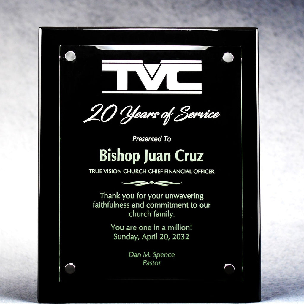 This elegant ebony plaque shows off your awards or achievements. Easily customize the plaque with a personal message, logo, or emblem. High-quality construction and stylish design make this plaque the perfect way to recognize any accomplishment.