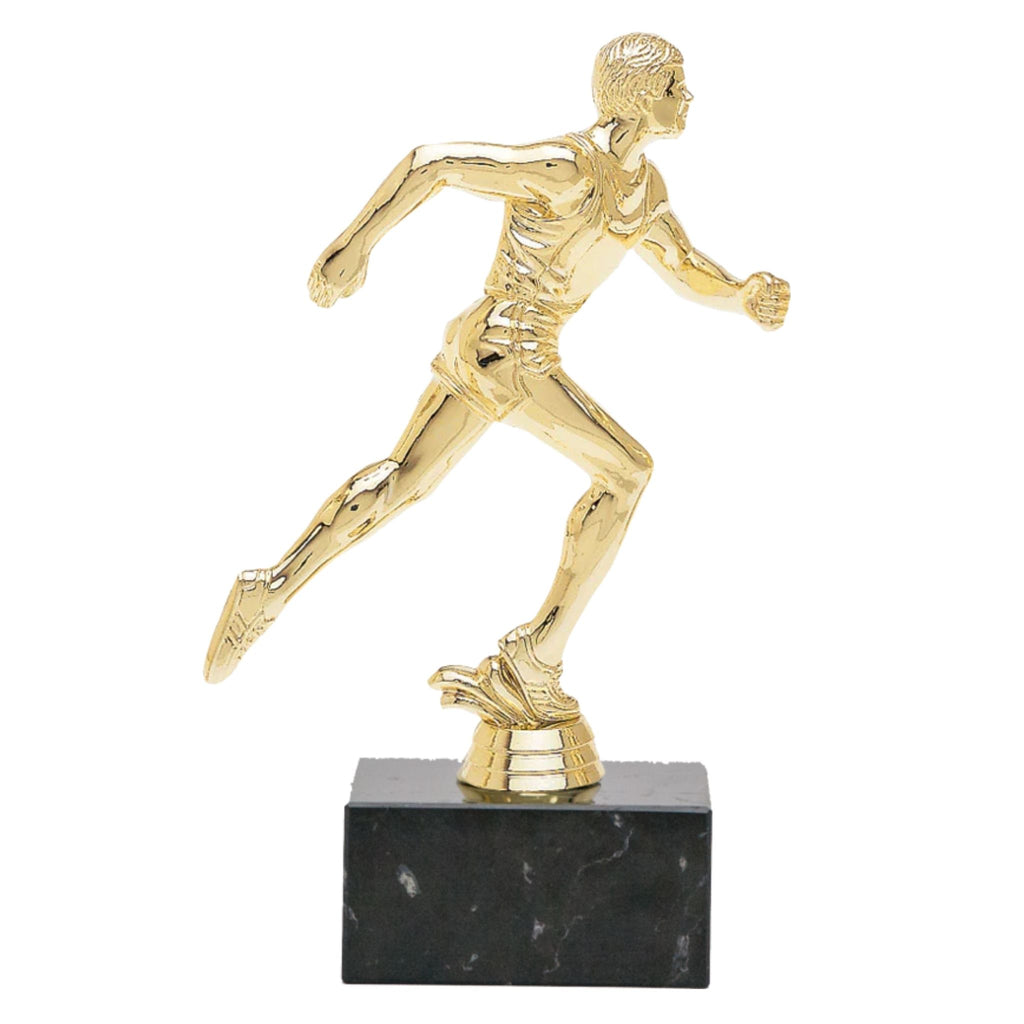 Coming in at 10.5 inches, this impressive award has an elegant gold sport or achievement figure on a  very heavy black marble base.  This award is available with one of eleven different figures. Personalization is provided on a  plate that will be mounted on the base.
