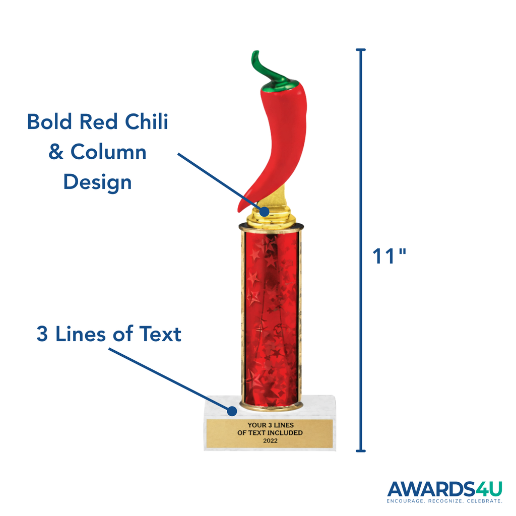 Bring the heat with this hilarious and unique 11” Chili Pepper Column Trophy! Whether you want to bring some lighthearted fun to the office or surprise someone with a unique gift, this trophy is sure to leave a lasting impression.