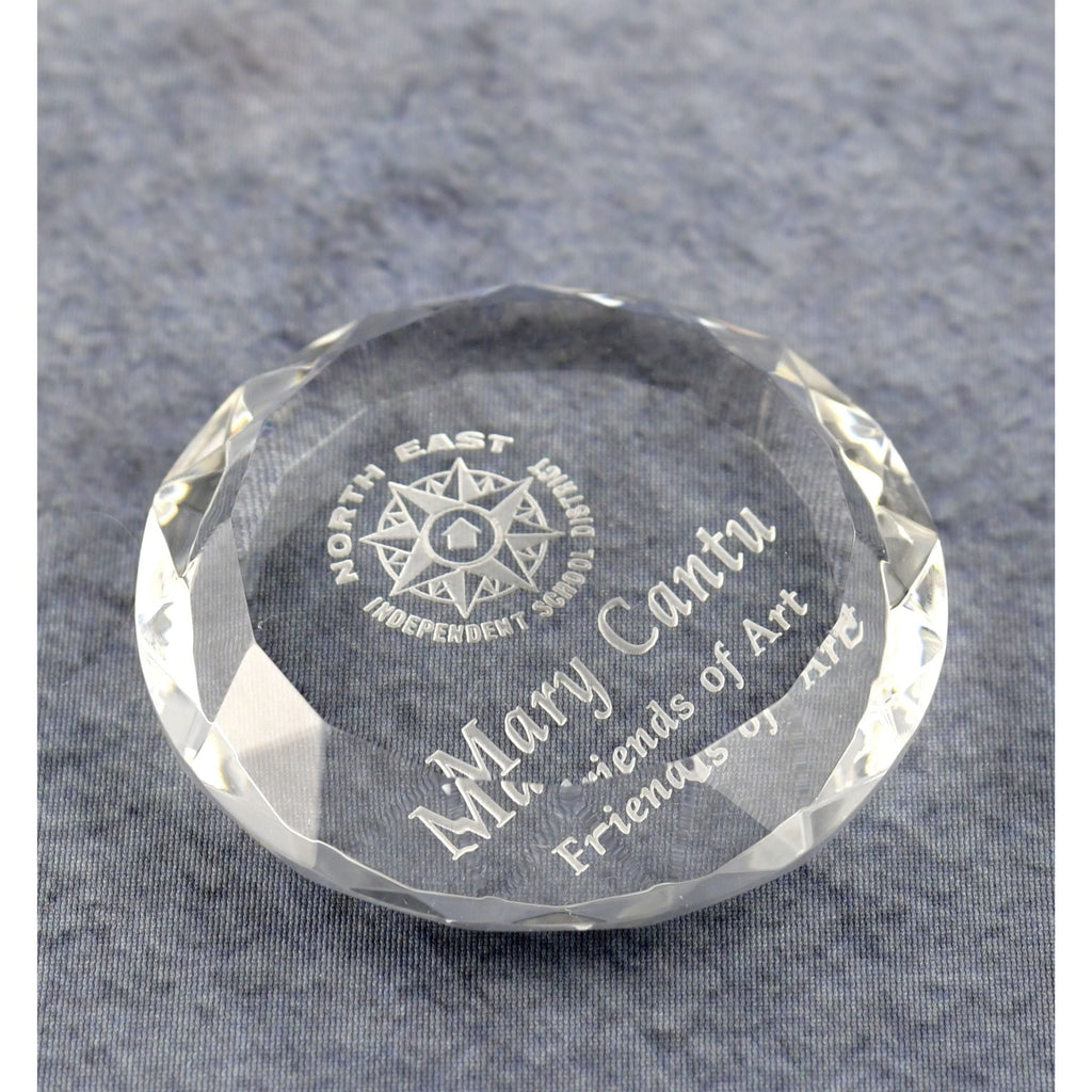 Top-of-the-line craftsmanship - Faceted round optic crystal paperweights make an outstanding recognition award or gift. Impress your guests with the facets reflecting light and capturing any room's attention.