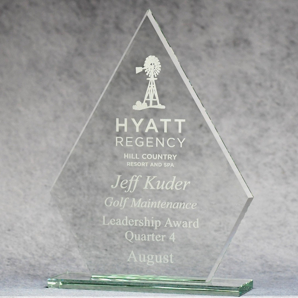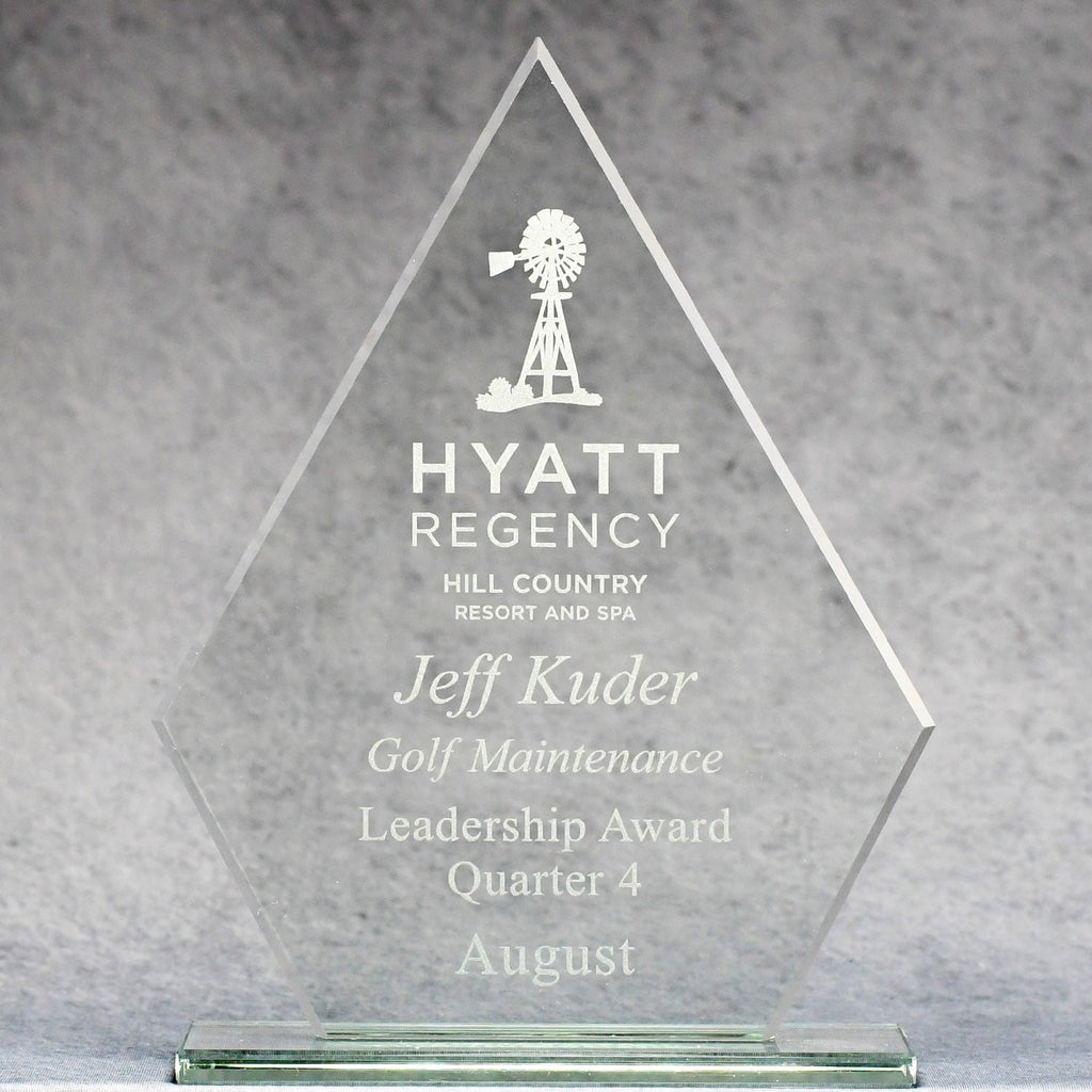 Make your awards memorable with this beautiful and economic jade crystal diamond-shaped award! It's perfect for recognizing the brilliance of any person or team. Show your appreciation and acknowledge excellence with this stunning reward.