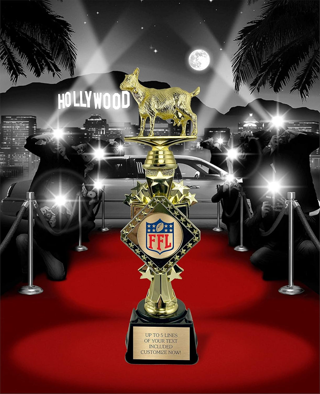 Crown your league champion with the ultimate Fantasy Football Trophy – The G.O.A.T.! Standing 13" tall, this impressive award features the iconic goat figurine atop a sleek base, making it a perfect tribute to the greatest of all time. Customize the engraved plate with the winner’s name, league name, and a personal message, with up to five lines included to make the recognition truly memorable.