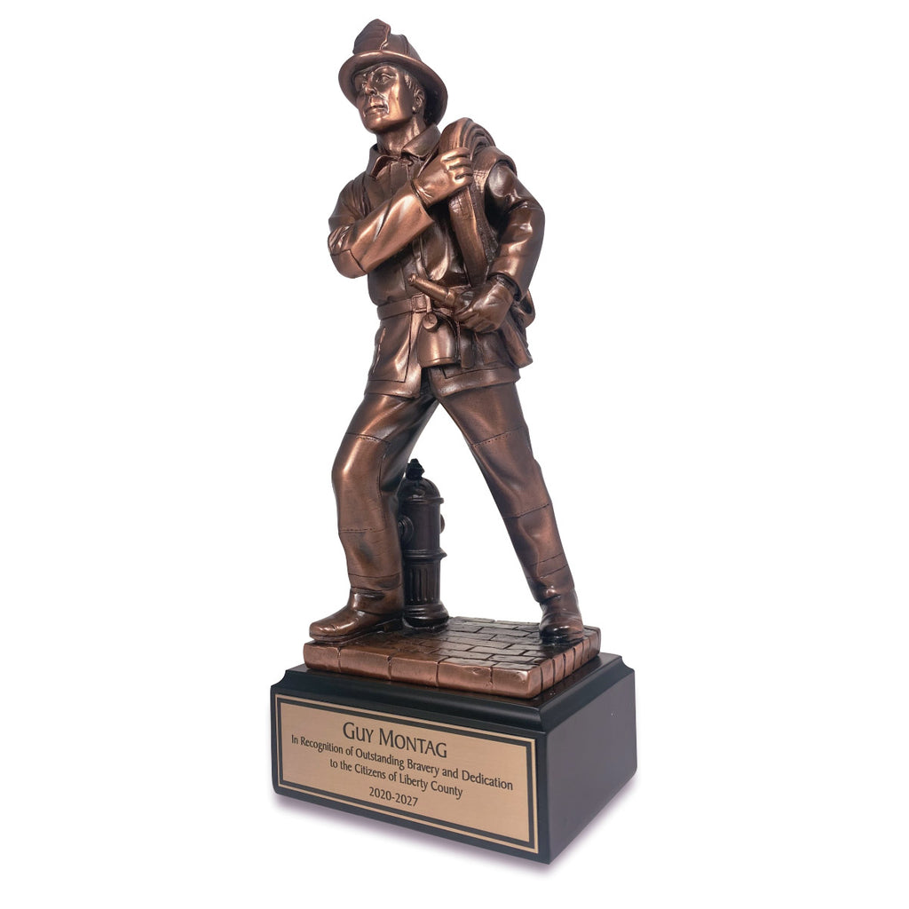 Honor the bravery and dedication of your local heroes with the Firefighter Figurine Resin. Standing 12 inches tall, this antiqued bronze resin figure captures the strength and spirit of firefighters who face challenges head-on. It’s a meaningful way to show appreciation for their hard work and commitment, with space for up to four lines of personalized engraving at no extra charge.