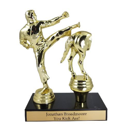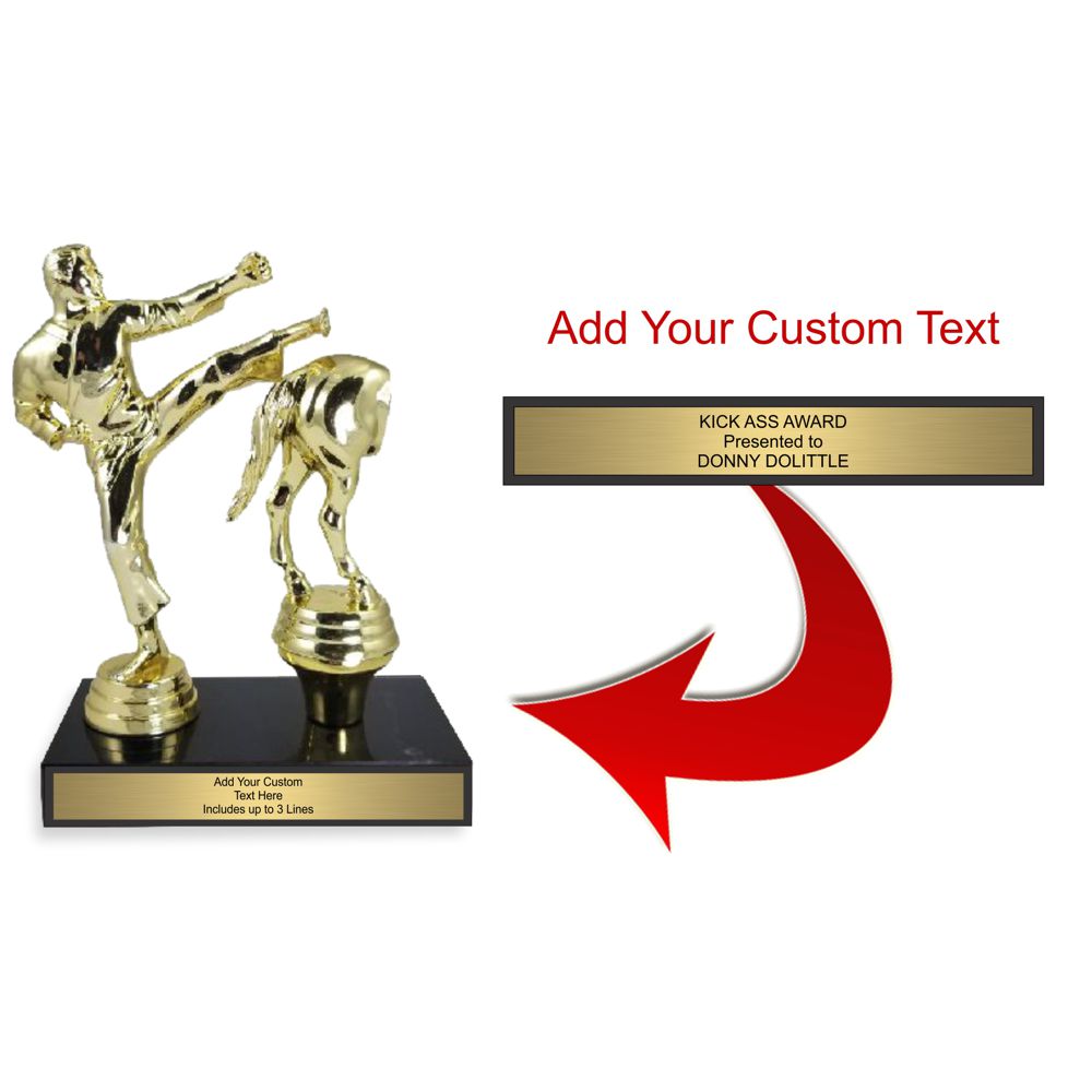 Celebrate those who truly “kick ass” at work, home, or wherever it counts with this bold and playful Kick Ass Trophy. Perfect for recognizing a job well done with a sense of humor, this award is guaranteed to bring a smile to anyone’s face. Personalize it with up to three lines of custom text included for a unique touch. Standing 7" tall, it’s the ultimate way to honor hard work and attitude.