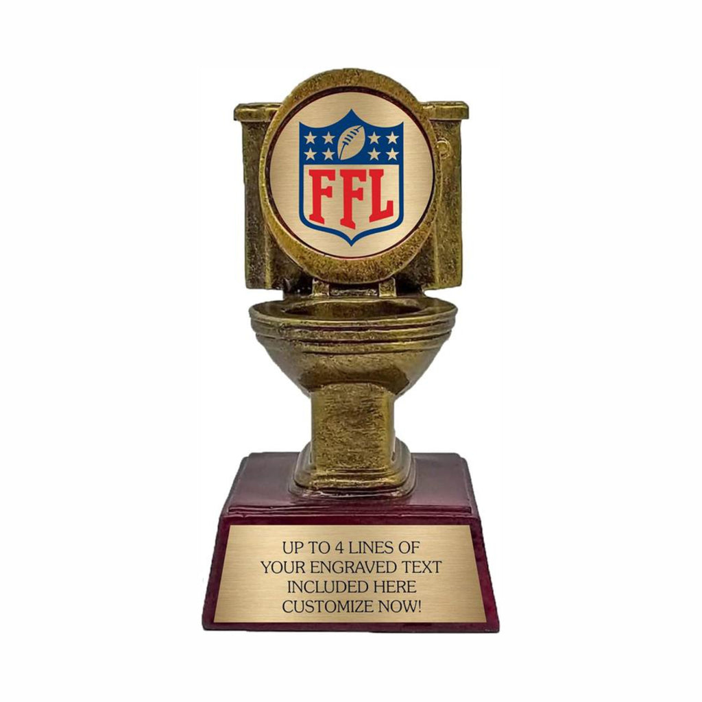 Are you looking for a way to cheer up the last place finisher in your Fantasy League? You might want to consider a funny and quirky award like our toilet bowl! It comes with a 2" disk or a plate for the base. Let's make the experience a little bit more lighthearted and memorable for everyone involved!