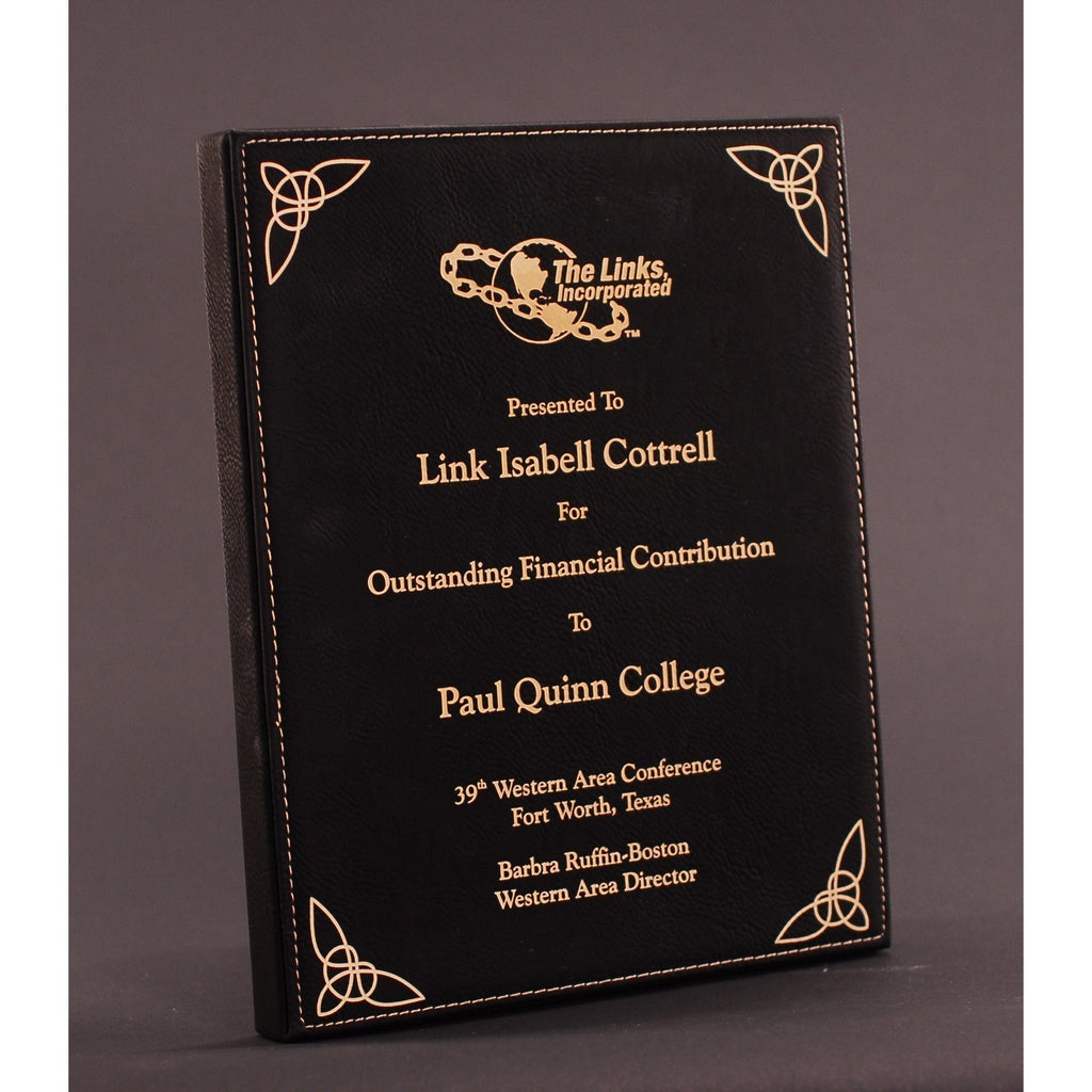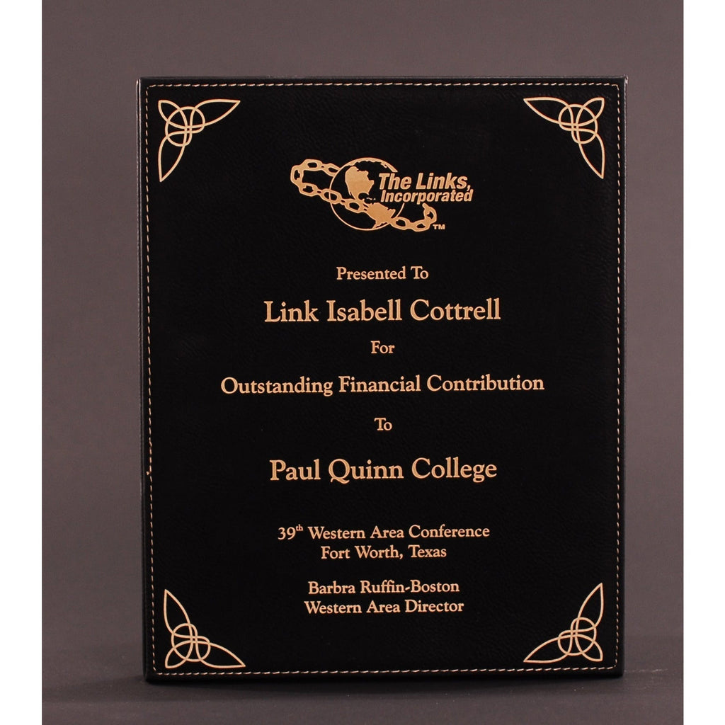 This Leatherette Plaque adds style to any setting, making it an ideal award or recognition presentation. The black color gives a classic, timeless appeal that lasts years.