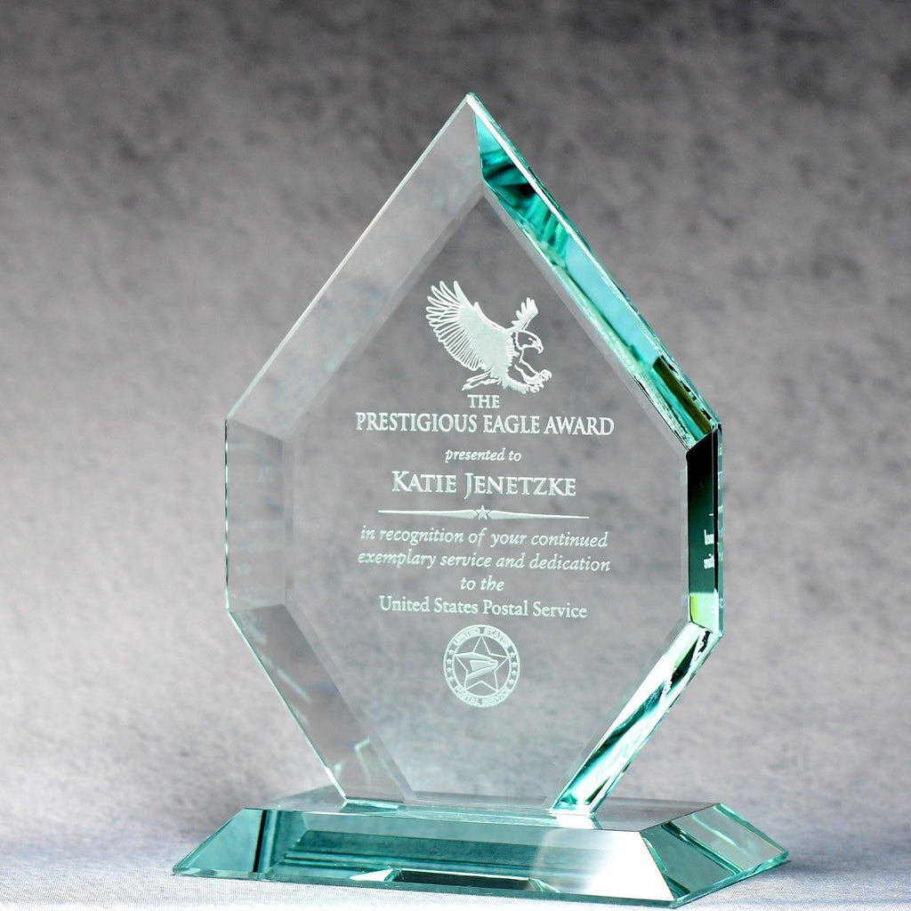 Reward someone special with this magnificent diamond and jade crystal award. Its precise etching and large size will surely wonderfully showcase the recipient's accomplishments! Let them proudly display their achievement for all to see.