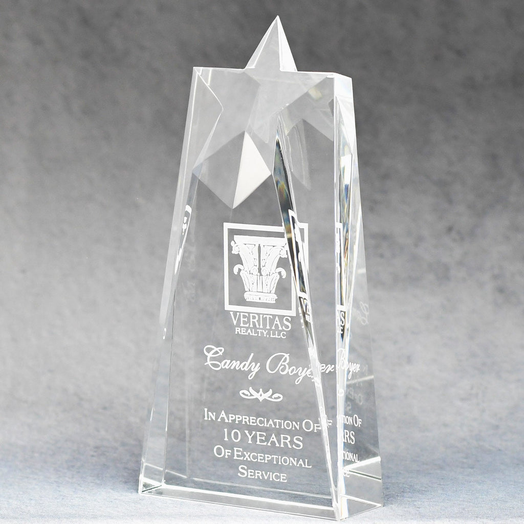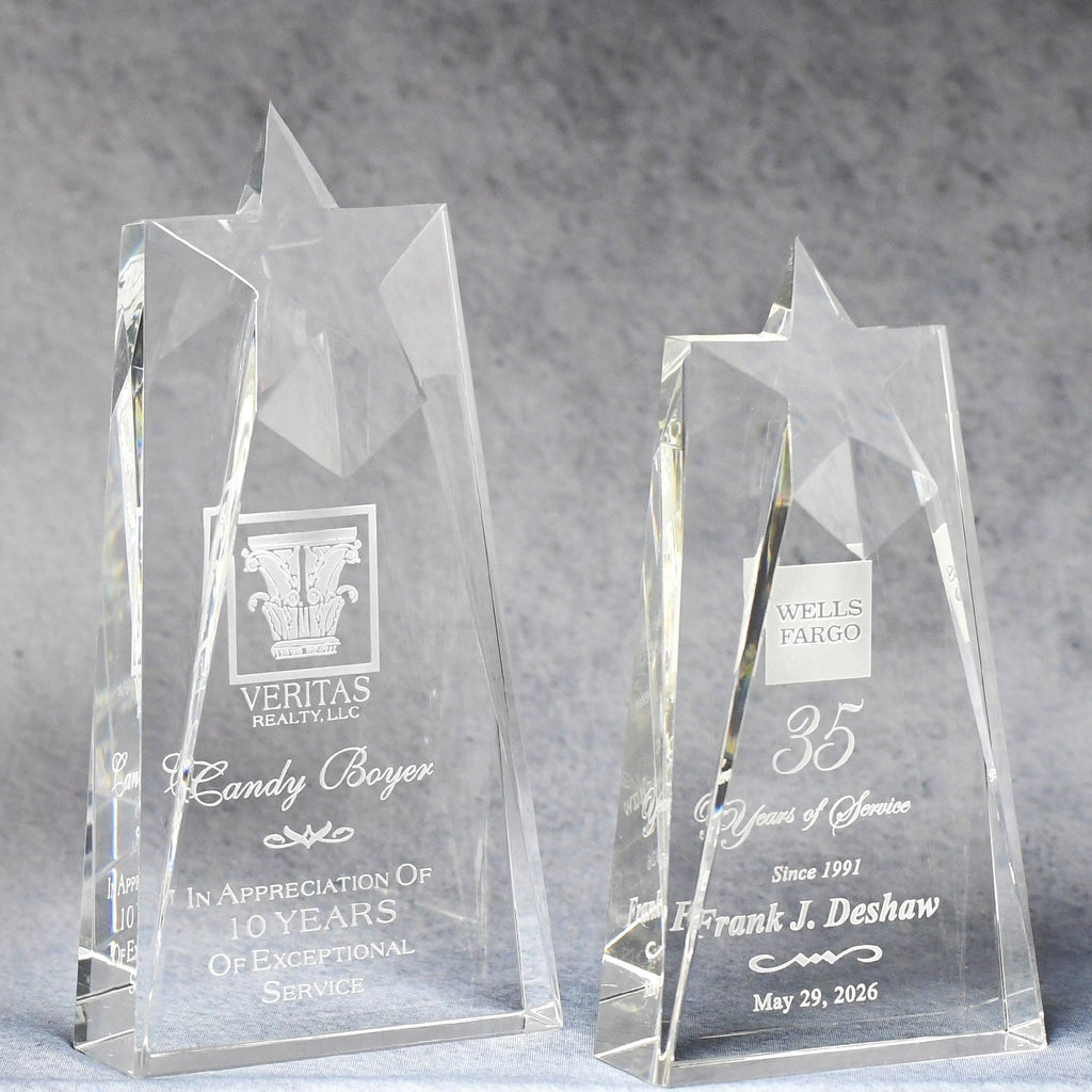 This Optic Crystal Star Tower Awards are precision machined and hand finished to absolute perfection. Providing you with a truly unique optical crystal award that stands out from the rest.