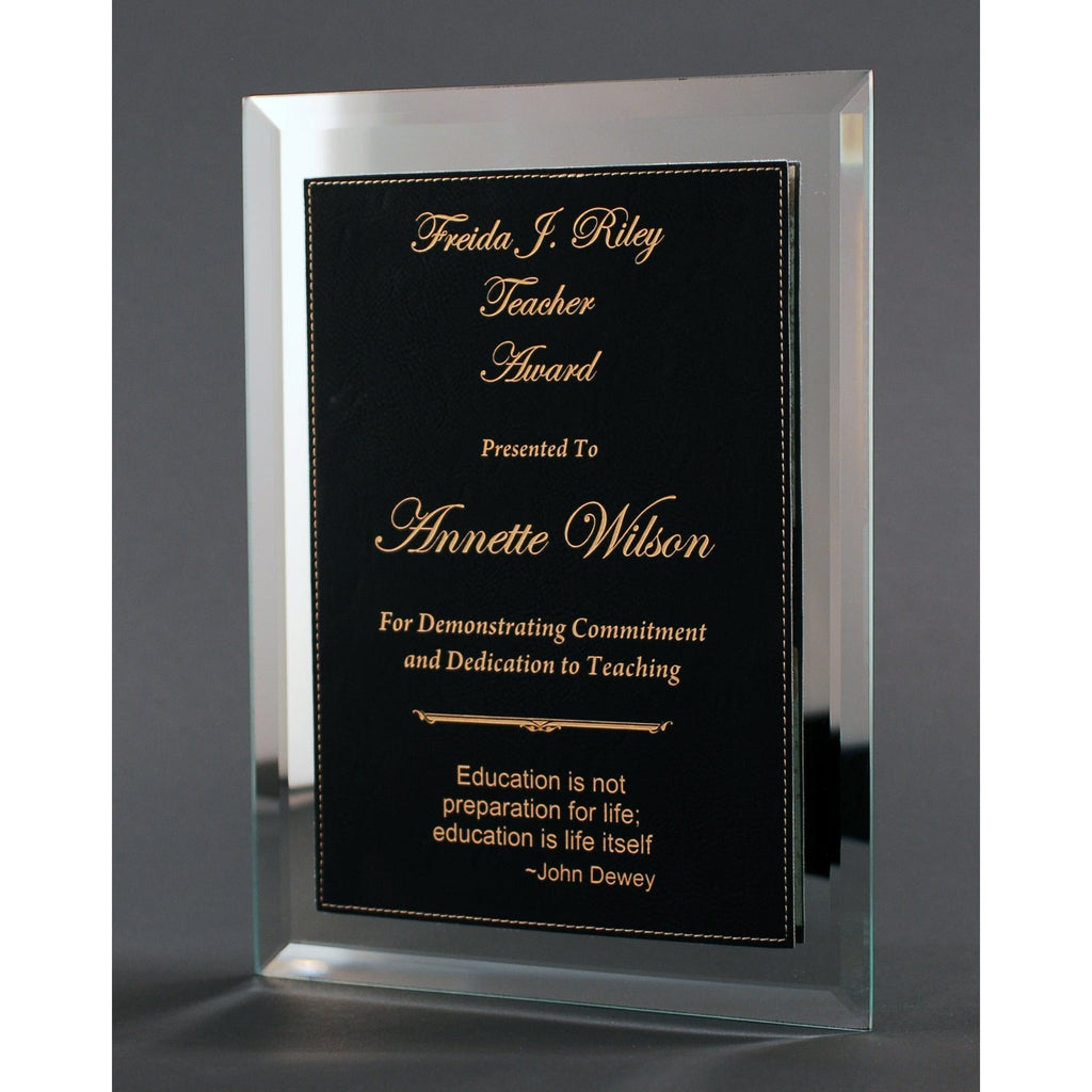 Mirror Plaque with Black and Gold Lasered Leatherette Plate