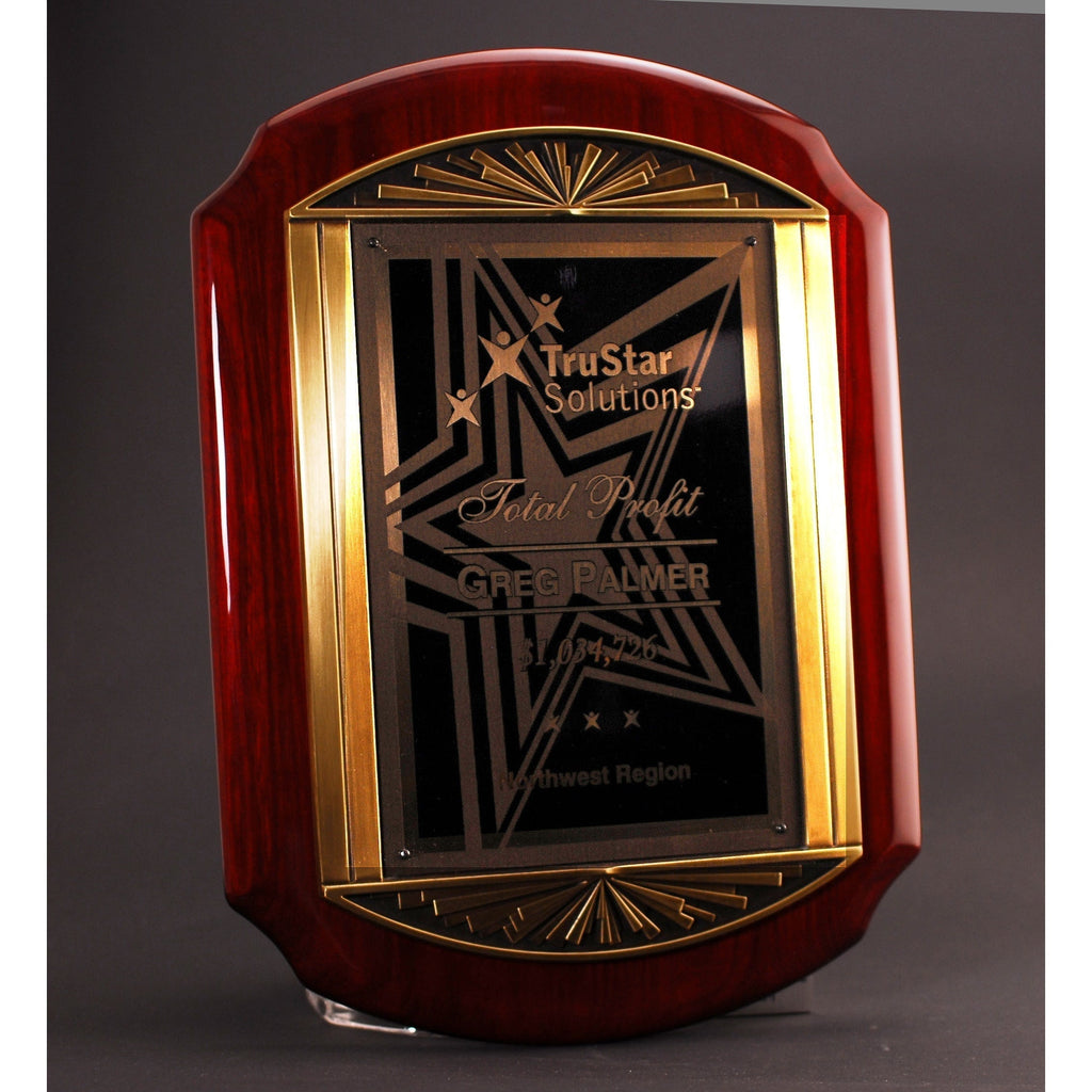 - Distinctive metal casting - Personalize this plaque with a distinctive black brass plate. This striking combination of wood and sculpted metal produces an unmistakable richness that will surely make an impression.