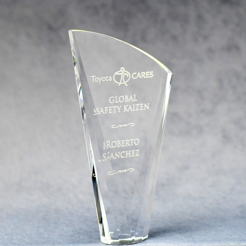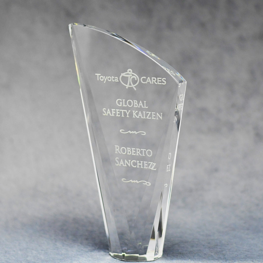 This stately optically clear sail-shaped crystal award reflects a rainbow of colors. It is perfect for recognizing excellence in your organization. Available in 3 sizes to accommodate any level of achievement. Your recipient will know how valued they are when presented with this artistic creation of spectra color. We will beautifully etch your heartfelt message for years of enjoyment.
