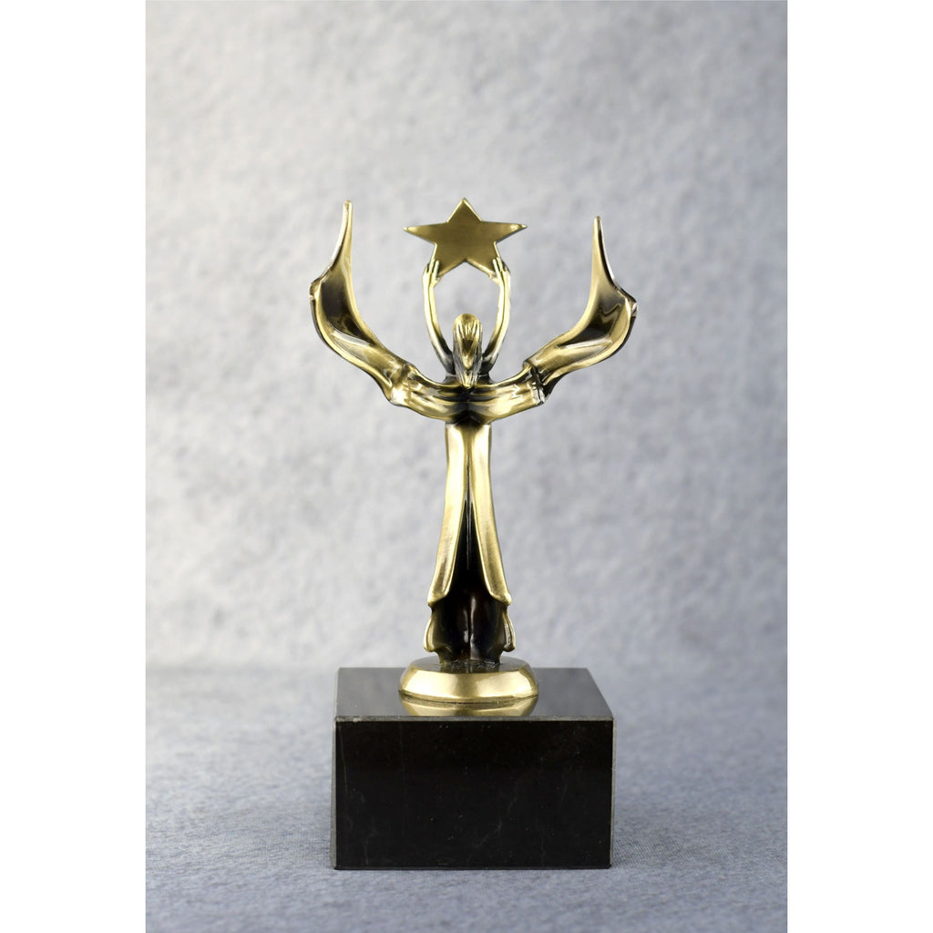 Let success, accomplishment, and victory be immortalized with this magnificent trophy! The beautiful figure on a black marble base exudes class and elegance. It is sure to make anyone proud of their achievements.