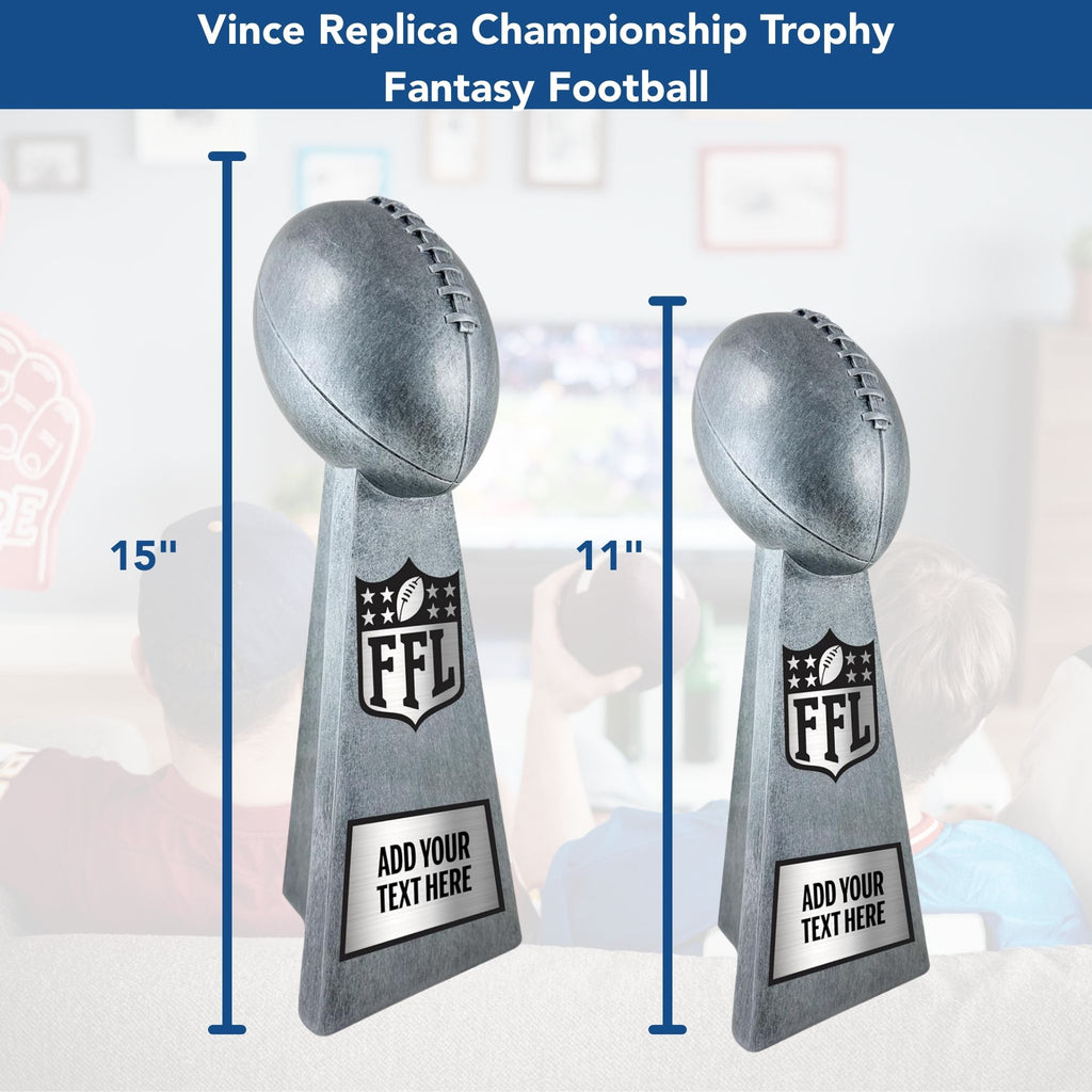 Celebrate your league champion with this Vince-style Fantasy Football Trophy, a striking replica-inspired award designed to honor the top team of your fantasy football season.