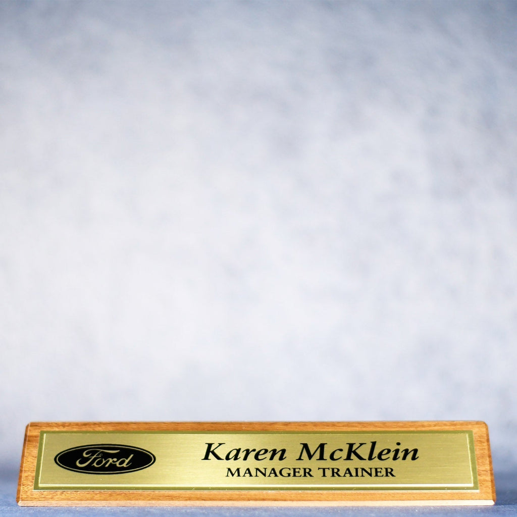 - Personalize Your Space - Add a personalized touch to your desk with this handsomely designed walnut nameplate. Engrave your name, title, motto, logo, and other personal details using this two-tone double-brass engraving process for an unmistakable style.